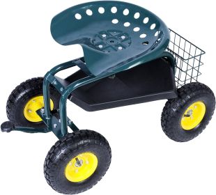 Garden Cart Rolling Work Seat with Tool Tray and 360 Swivel Seat